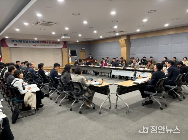 정안뉴스 김재홍 기자 | 경상남도는 15일 경남도청 서부청사 중강당 회의실에서 ‘경남 관광개발 정책공유 및 전략회의’를 개최했다.
