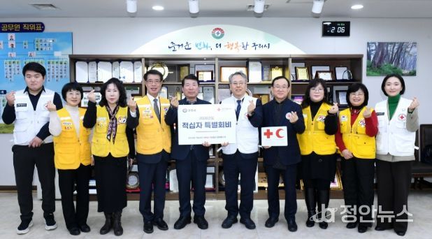 정안뉴스 안정주 기자 | 구리시는 1월 15일 시청 3층 시장실에서 대한적십자사 경기도지사에 어려운 이웃을 돕기 위한 2026년 적십자 특별회비 100만 원을 전달했다.