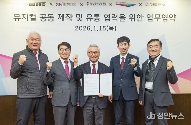 정안뉴스 김재홍 기자 | 밀양문화관광재단은 지난 15일 세종문화회관 귀빈실에서 세종문화회관과 ‘뮤지컬 공동 제작 및 유통 협력을 위한 업무협약(MOU)’을 체결했다.