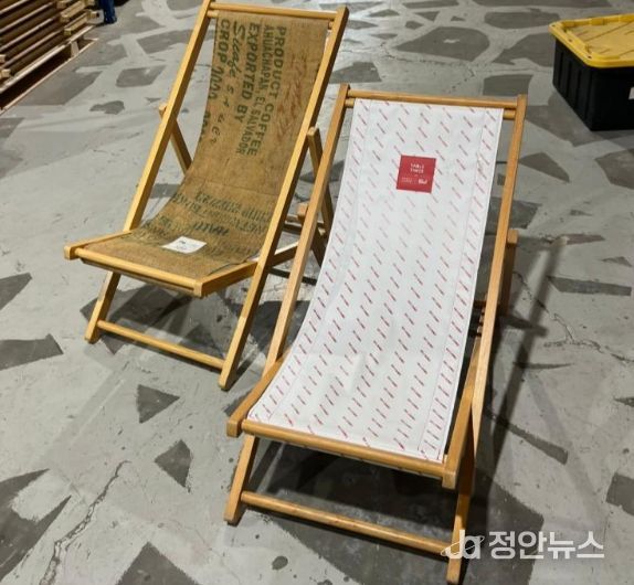 행사와 페스티벌 이후 폐기되던 집기에 주목한 ㈜만만한녀석들은 폐커피자루와 재생 소재를 활용해 스툴, 테이블, 선베드 등 행사용 집기를 개발했다. 조립과 해체가 쉬운 구조와 모듈형 디자인을 적용해 반복 사용과 운반 효율을 높였으며, 1회성 폐기물을 구조적으로 줄이는 대안을 제시했다.