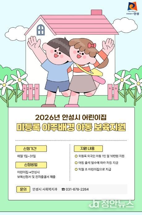 정안뉴스 안정주 기자 | 안성시는 2026년부터 어린이집에 다니는 미등록 외국인(이주배경) 영유아에게 월 10만원의 보육지원금을 지원한다고 밝혔다.