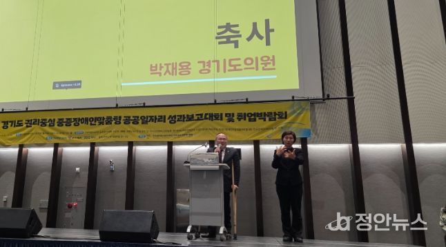 정안뉴스 안정주 기자 | 경기도의회 보건복지위원회 박재용 의원(더불어민주당, 비례)은 16일, 수원컨벤션센터에서 열린 ‘2025년 경기도 권리중심 중증장애인맞춤형 공공일자리 성과보고대회 및 취업박람회’에 참석해 축사를 전하고, 중증장애인의 노동권 보장과 권리중심 공공일자리 정책의 지속적인 발전 필요성을 강조했다.