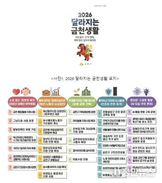 정안뉴스 안정주 기자 | 금천구는 2026년부터 새롭게 시행되거나 변경되는 주요 정책과 제도를 한눈에 확인할 수 있는 ‘2026 달라지는 금천생활’을 발간했다고 19일 밝혔다.