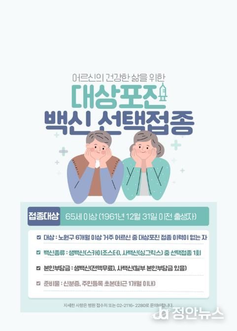 정안뉴스 안정주 기자 | 서울 노원구가 65세 이상 모든 어르신을 대상 보편적 예방접종 정책을 안정적으로 운영하고 있다고 밝혔다.