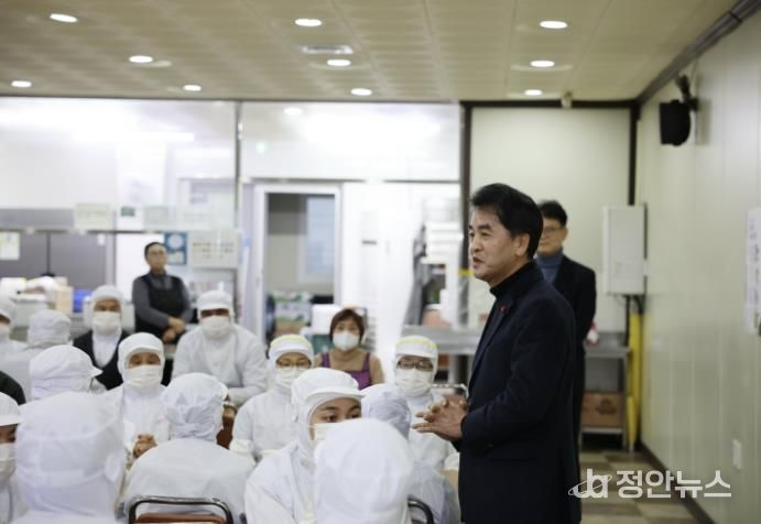 정안뉴스 황은경 기자 | 최재형 보은군수는 19일 ㈜이킴 삼승공장을 방문해 지난해 화재로 피해입은 보은공장 상황과 생산 정상화와 대체 생산 체계 운영 상황을 점검하고 임직원들을 격려했다.