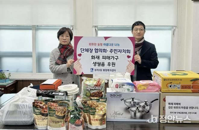 정안뉴스 안정주 기자 | 장안구 정자3동 주민들이 지난 13일 발생한 관내 아파트 화재 피해 가구를 돕기 위한 나눔에 참여해 온정을 전달했다.