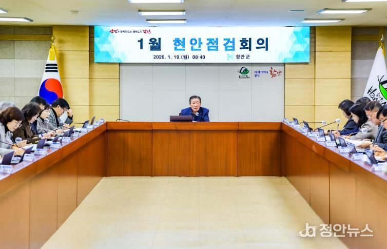 정안뉴스 김재홍 기자 | 함안군은 지난 19일 군청 3층 중회의실에서 1월 현안점검회의를 열고 도민 상생토크 준비 상황과 설 명절 공직기강 확립, 인사이동에 따른 업무연찬 강화, 산불 예방 대응체계 유지 등 주요 현안을 점검했다고 밝혔다.