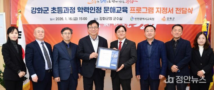 정안뉴스 안정주 기자 | 인천광역시교육청은 강화군 내 저학력 성인의 기초학력 지원을 위해, 강화군청을 ‘초등 학력인정 문해교육 프로그램’ 운영기관으로 지정하고, 16일 지정서를 전달했다.