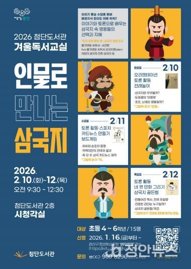 첨단도서관은 2월 10일부터 12일까지 3일간 ‘인물로 만나는 삼국지’ 프로그램을 운영한다.