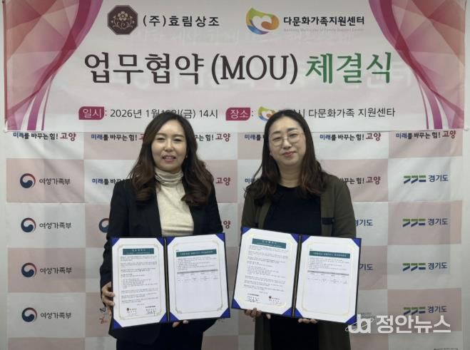 정안뉴스 안정주 기자 | 고양시다문화가족지원센터는 지난 16일, 효림상조와 다문화가정의 안정적인 일상지원과 지역사회 상생을 위한 업무협약(MOU)을 체결했다고 밝혔다.