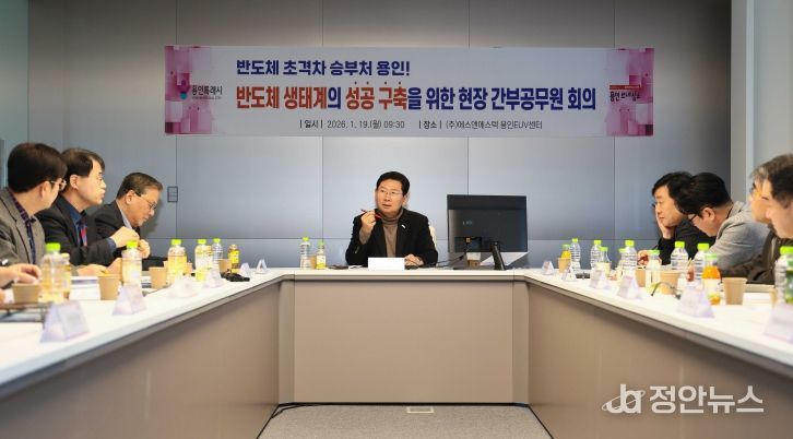 이상일 시장은 이날 시청 간부공무원 30여명과 회의를 열고 용인에서 진행 중인 초대형 반도체산업 프로젝트의 원활한 추진을 위해 전력과 용수, 도로·철도 등 기반시설 구축 현황을 점검하고, 반도체산업 관련 기업 현장의 목소리를 경청하면서 발전 방안을 논의했다.