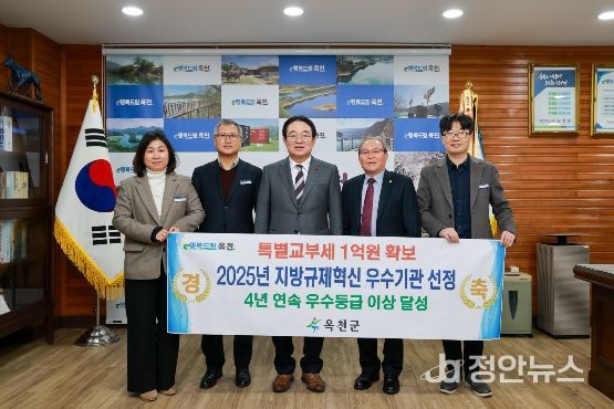 정안뉴스 황은경 기자 | 옥천군은 행정안전부가 주관하는‘2025년 지방규제혁신 추진성과 평가’에서 4년 연속 우수기관으로 선정돼 특별교부세 1억 원을 확보하는 성과를 거두었다고 밝혔다.
