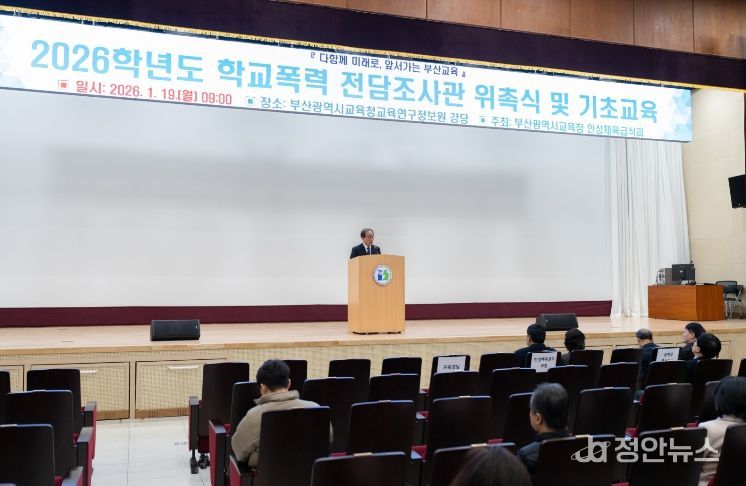 정안뉴스 황정혜 기자 | 부산광역시교육청은 지난 19일 부산진구 양정동 교육연구정보원에서 학교폭력 전담조사관 126명에 대한 위촉식과 함께 이들에 대한 기초교육을 진행했다고 밝혔다.