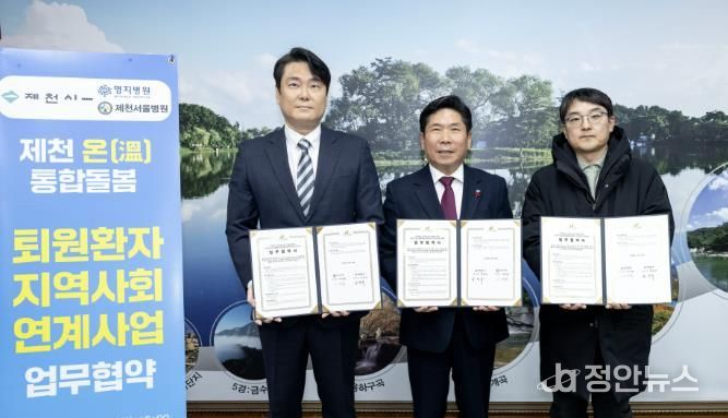 정안뉴스 황은경 기자 | 제천시는 지난 20일 제천명지병원, 제천서울병원과 함께 ‘제천 온(溫) 퇴원환자 지역사회 연계사업’ 업무협약을 체결했다고 밝혔다.