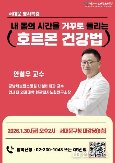 정안뉴스 안정주 기자 | 서대문구가 연세대 의대 강남세브란스병원 내분비내과 안철우 교수를 초청해 이달 30일 오후 2시부터 90분간 구청 6층 대강당에서 ‘1월 서대문 명사 특강’을 개최한다.