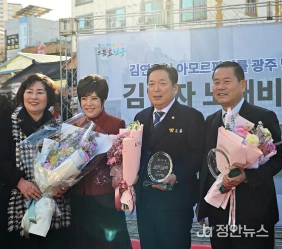 정안뉴스 안정주 기자 | 광주 남구의회 박용화 부의장이 지난 20일, 가수 김연자 노래비 건립에 헌신적인 노고와 공로를 인정받아 사직동주민자치회로부터 감사패를 받았다.