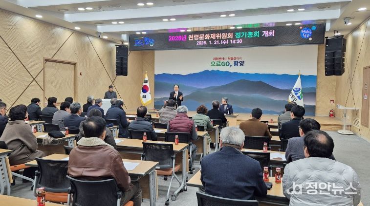 함양 천령문화제위원회는 1월 21일 함양군청 대회의실에서 이창구 천령문화제위원장과 축제위원 등 60여 명이 참석한 가운데 ‘2026년 천령문화제위원회 정기총회’를 개최했다.