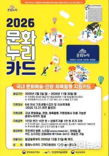 문화누리카드는 문화생활을 누리기 어려운 6세 이상 기초생활수급자와 차상위계층에게 지원하는 지원금으로, 2026년부터는 지원 금액이 기존 14만 원에서 15만 원으로 1만 원 인상해 지급된다.