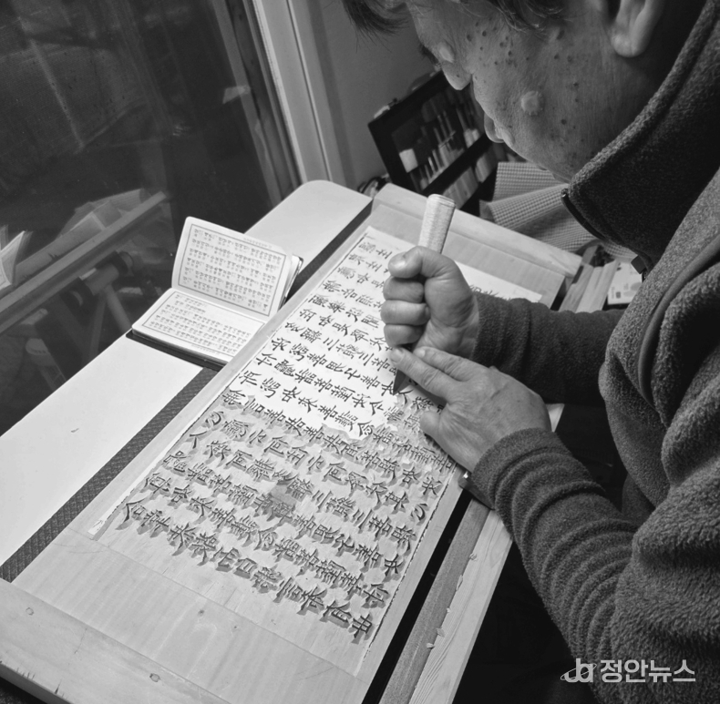 “복각을 위한 판각은 기본 판하본의 취지를 그대로 똑같이 새겨야 합니다. 각자의 생각과 판단을 버려야 한다는 점이 가장 어렵습니다.”