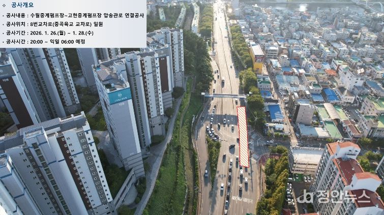 공사 기간 중에는 일시적인 차로 통제 및 교통 혼잡이 발생할 수 있으므로, 해당 구간을 이용하는 시민들은 교통안전 요원의 안내에 적극 협조하고, 가급적 우회도로를 이용해 줄 것을 당부했다.