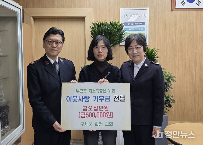 이번 기부는 구세군 과천교회가 성도들의 자발적인 참여로 마련한 성금으로, 종교단체와 행정기관이 협력해 지역 돌봄을 실천한 사례로 의미를 더했다.