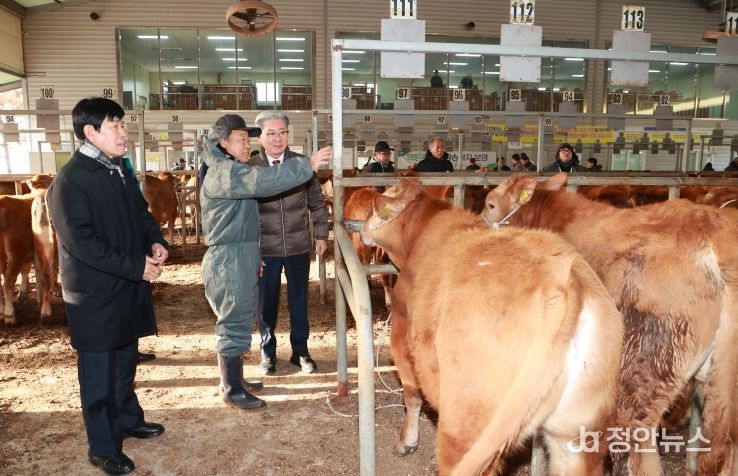 정안뉴스 김재홍 기자 | 의령군은 지난 26일 이른 아침 의령축협이 운영하는 가축시장을 방문해 한우 거래가격 동향과 송아지 경매 상황을 점검하고, 한우 사육 농가의 애로사항을 청취했다.