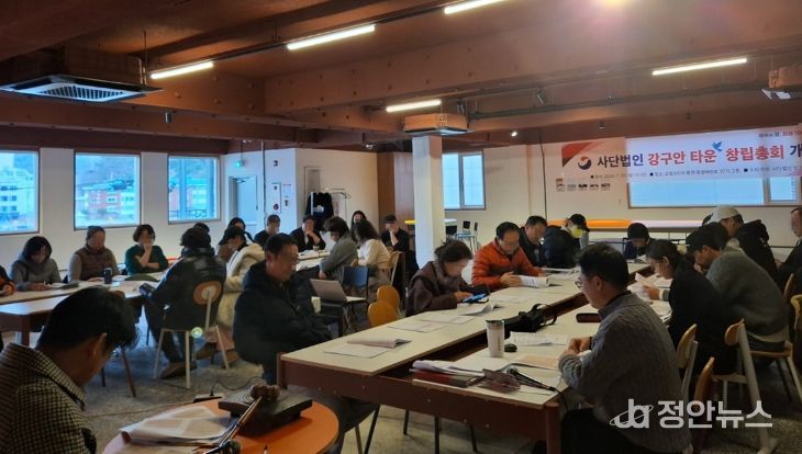정안뉴스 김재홍 기자 | 사단법인 강구안 타운(발기인대표 김성훈)은 침체된 지역상권 활성화와 소상공인 경쟁력 강화를 위한'강구안 상권활성화사업'추진을 주요 목적으로 지난 26일 로컬스티치 통영에서 사단법인 설립을 위한 창립총회를 개최했다.