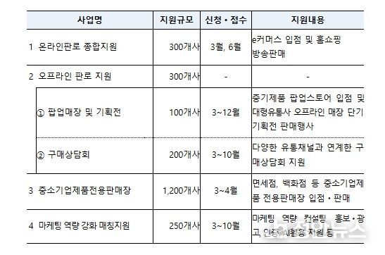 이번 사업의 총 지원 규모는 141억 7천만 원이며, 주요 지원 프로그램은 ①온라인 판로지원, ②오프라인 판로지원, ③중소기업제품 전용판매장 운영, ④마케팅 역량강화 프로그램 등이다.