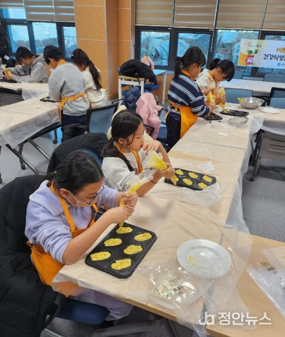 프로그램은 어린이 눈높이에 맞춘 겨울철 영양교육 이론과 설탕과 지방을 줄인 재료를 활용해 건강한 마들렌을 직접 만들어보는 체험활동으로 구성됐다.
