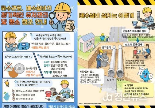 시 관계자는 “배수설비 유지관리는 개인의 위생뿐만 아니라 정읍시 전체의 안전 및 환경과 직결되는 중요한 문제”라며 “안전하고 깨끗한 정읍을 만들어 가는 과정에 시민 여러분의 적극적인 협조가 꼭 필요하다”라고 전했다.