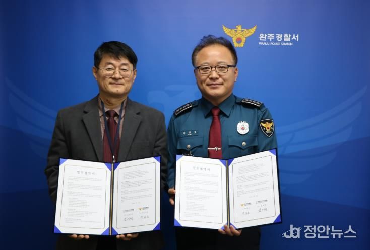 정안뉴스 안정주 기자 | 완주시니어클럽과 완주경찰서가 노인일자리사업 ‘시니어 치안지킴이’ 운영을 위한 업무협약을 체결했다.