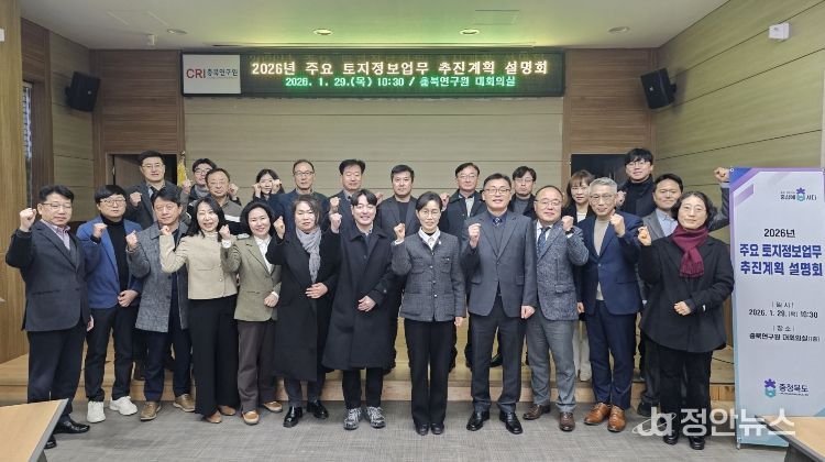 정안뉴스 황은경 기자 | 충북도는 29일 도와 시.군 및 정보공사 등 관계관 40여 명이 참석한 가운데 충북연구원에서 ‘2026년 주요 토지정보업무 추진계획 설명회’를 개최했다.