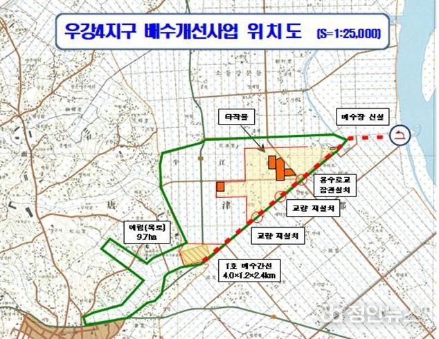 정안뉴스 황도연 기자 | 당진시는 우강면 성원리·강문리·소반리·신촌리·승산리·창리 일원의 우강4지구 배수개선사업이 농림축산식품부 기본조사 대상지로 최종 선정됐다고 30일 밝혔다.