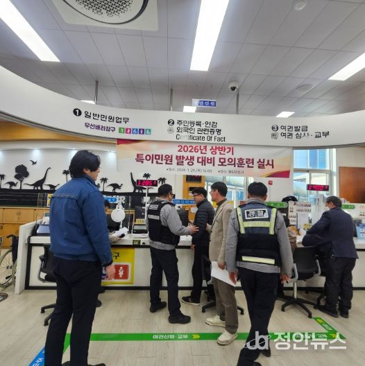 정안뉴스 김재홍 기자 | 고성군은 1월 29일 군청 열린민원과에서 고성경찰서와 연계하여'2026년 상반기 특이민원 대응 모의훈련'을 실시했다.
