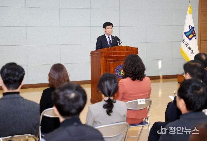 정안뉴스 황은경 기자 | 윤건영 충청북도교육감이 2일, 화합관에서 2월 월례조회를 개최했다.