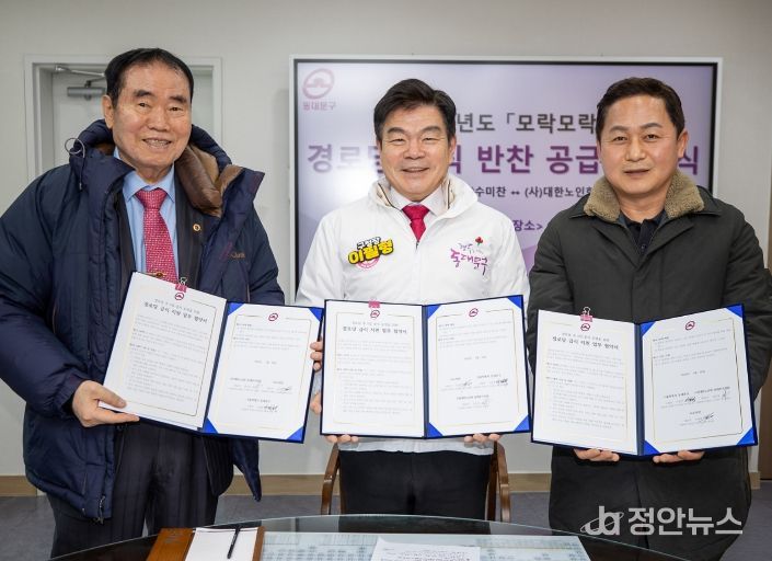 1월 28일 ‘동대문구’, ‘(사)대한노인회 동대문구지회’, ‘㈜수미찬’ 세 기관이 모여 협약을 체결함에 따라 ㈜수미찬은 신선하고 균형 잡힌 식단을 편성하여 2월부터 12월까지 반찬 배송을 신청한 경로당을 대상으로 매주 월요일부터 금요일까지 반찬 3종과 국 1종을 제공한다.