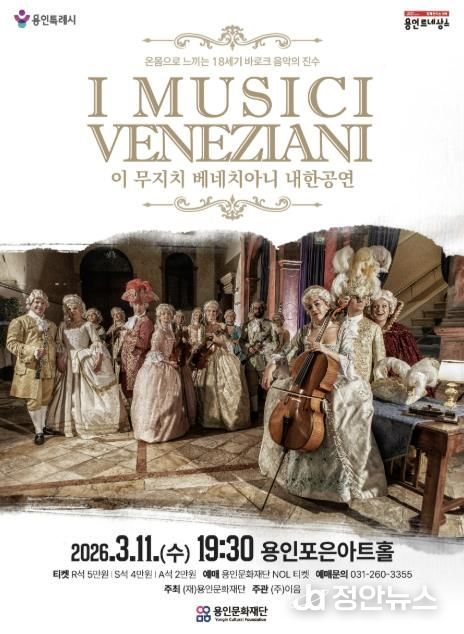 정안뉴스 안정주 기자 | 용인문화재단은 오는 3월 11일 용인포은아트홀에서 세계적인 바로크 앙상블 ‘이 무지치 베네치아니(I Musici Veneziani)’의 내한 공연을 개최한다.