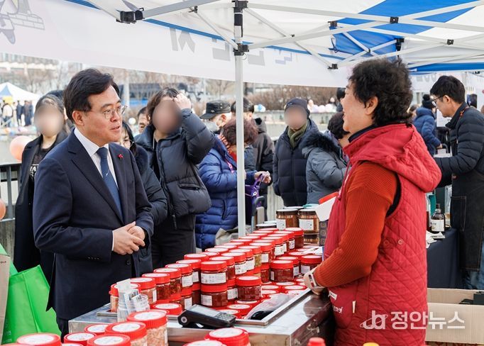 정안뉴스 안정주 기자 | 진교훈 서울 강서구청장이 5일 마곡광장에서 열린 ‘설맞이 농특산물 직거래장터’를 찾았다.