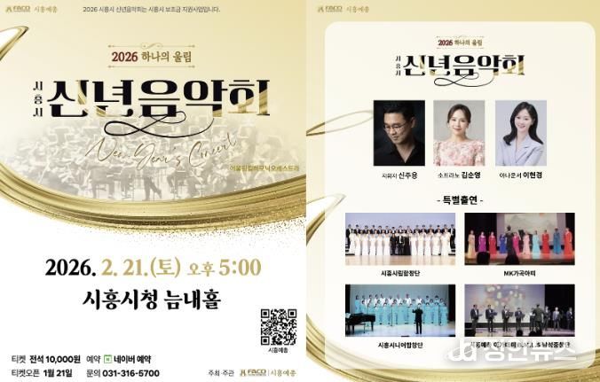 정안뉴스 안정주 기자 | 시흥시가 지원하고 (사)한국예술문화단체총연합회 시흥지회에서 주관하는 ‘2026 시흥시 신년음악회- 하나의 울림’이 오는 2월 21일 오후 5시, 시청 늠내홀에서 개최된다.