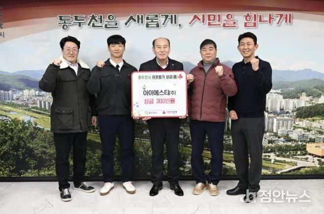 정안뉴스 안정주 기자 | 동두천시 어울림센터 시민수영장을 민간위탁 운영 중인 아이에스티(주)(대표 최한근)는 지난 4일 동두천시청 시장실에서 기부금 전달식을 진행했다.