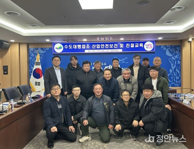 정안뉴스 황도연 기자 | 예산군 수도과는 지난 5일 군청 중회의실에서 상수도 급수공사 대행업소 14개사를 대상으로 산업안전보건 및 민원 응대 역량 강화를 위한 교육을 실시했다.
