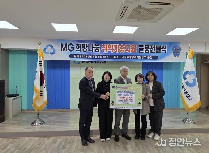 정안뉴스 안정주 기자 | 의정부시 의정부1동주민센터는 2월 5일 의정부중앙새마을금고가 본점(시민로 53) 대강당에서 지역사회 취약계층 지원을 위한 총 1천250만 원 상당 후원물품 전달식을 개최했다고 밝혔다.