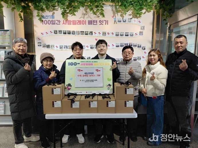 정안뉴스 안정주 기자 | 의정부시 송산1동주민센터는 2월 4일 민락동 소재 새잎한약국이 설 명절을 맞아 관내 독거노인 및 취약계층을 위해 수제 쌍화탕 50세트를 기부하며 따뜻한 나눔을 실천했다고 밝혔다.
