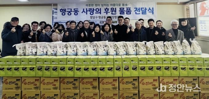 정안뉴스 안정주 기자 | 수원시 팔달구 행궁동은 지난 6일 설 명절을 맞아 ‘행궁동 사랑의 후원 물품 전달식’을 개최했다. 이번 전달식에는 설 명절을 앞두고 행궁동 취약계층을 위해 후원 물품을 기부한 행궁동 주민자치회를 비롯한 단체장들과 후원자들이 참석해 이웃 나눔의 의미를 함께 했다.