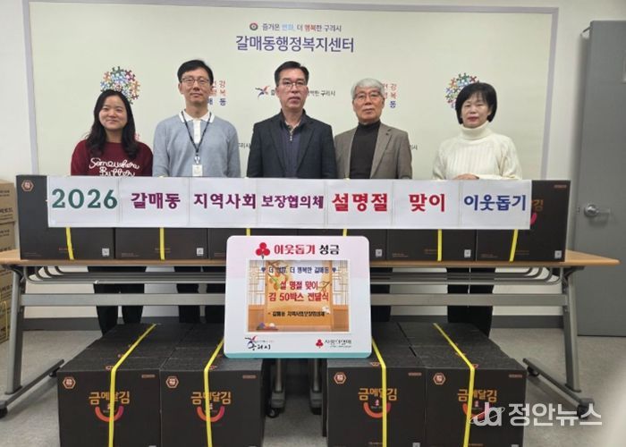 정안뉴스 안정주 기자 | 구리시 갈매동 행정복지센터는 지난 2월 6일 설 명절을 앞두고 갈매동 지역사회보장협의체가 지역 내 어려운 이웃을 돕기 위해 김 50박스를 후원했다고 밝혔다.