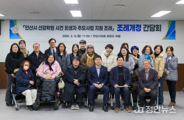 정안뉴스 안정주 기자 | 안산시의회 최찬규 의원은 2월 9일 안산시의회 3층 대회의실에서 ‘안산시 선감학원 사건 희생자 추모사업 지원 조례’ 일부개정을 위한 간담회를 개최했다.