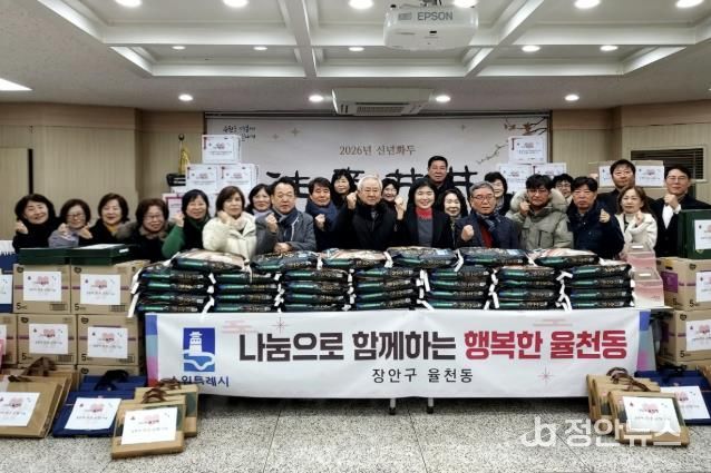 정안뉴스 안정주 기자 | 수원시 장안구 율천동 행정복지센터는 지난 9일, 설 명절을 맞아 관내 어려운 이웃에게 따뜻한 나눔을 전하고자 ‘우리동네 이웃 나눔행사’ 전달식을 개최했다.