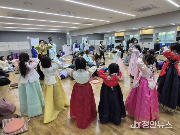 행사장에는 간편하게 입을 수 있는 한복을 착용하고 사진을 촬영할 수 있는 공간이 마련됐으며 어린이들이 한복을 입고 참여해 전통 명절 분위기를 조성했다.