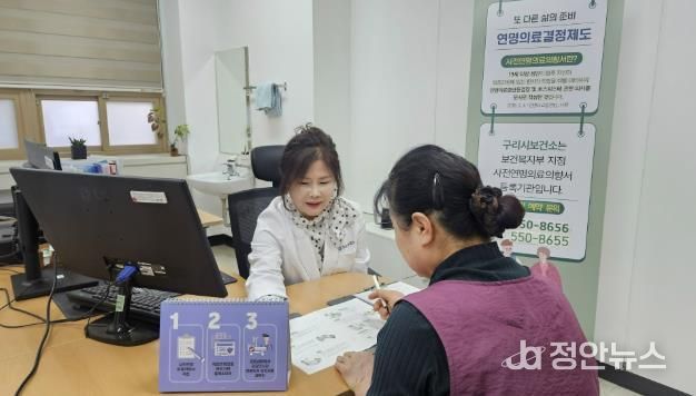 정안뉴스 안정주 기자 | 구리시는 구리시보건소가 시민이 삶의 마지막 순간까지 자기 뜻에 따라 존엄한 선택을 할 수 있도록 사전연명의료의향서 상담 및 등록 서비스를 2년 2개월째 운영하고 있다고 밝혔다.