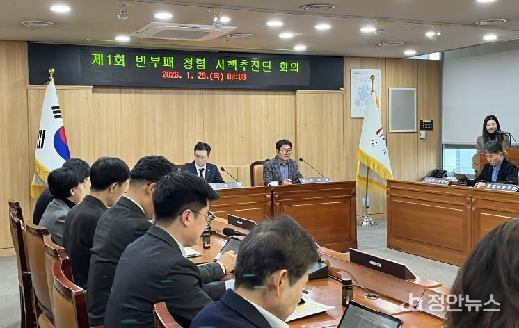 정안뉴스 안정주 기자 | 서울 성동구는 지난 1월 29일 구청장, 부구청장을 비롯한 간부 공무원 총 68명이 참석한 가운데 '2026년 제1회 반부패 청렴 시책추진단 회의'를 개최했다.